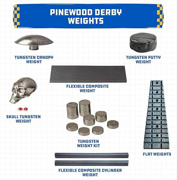 - Must use the official Pinewood Derby block, wheels, and axles.